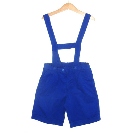 Short vintage, de marque CYRILLUS, en excellent état, couleur bleu roi, ceinture élastique. Look vintage grâce à ses bretelles.