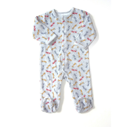 Le parfait petit pyjama pour les nuits de votre bébé. Pyjama de marque BOUTCHOU en velours tout doux, imprimé multicolore sur fond gris. Fermeture par pressions à l'entrejambe. Etat excellent.