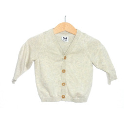 Gilet en excellent état de marque TAO, en coton tricoté, couleur beige chiné.