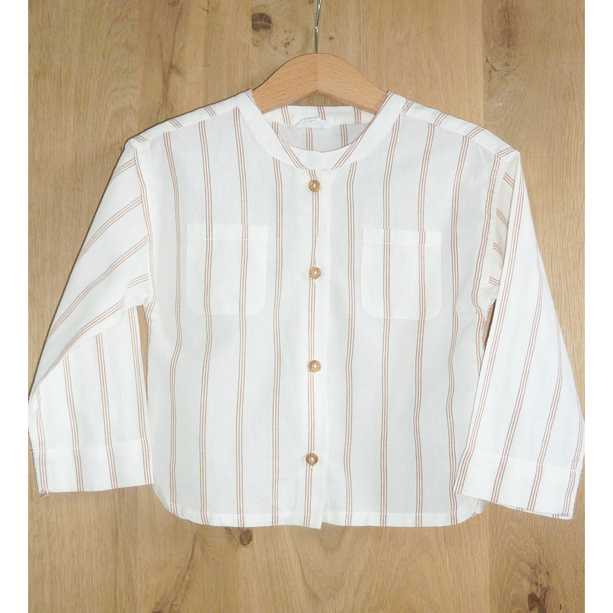 Blouse en état neuf, de marque VERT BAUDET, rayures de couleur paprika sur fond crème, en coton.