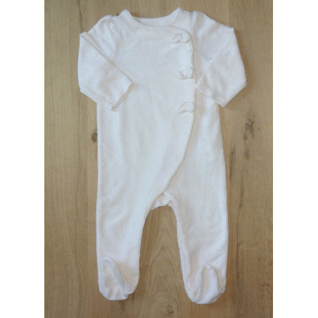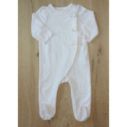 Le parfait petit pyjama pour les nuits de votre bébé. Pyjama de marque TAO en velours côtelé, couleur crème orné de petits noeuds. Etat excellent.