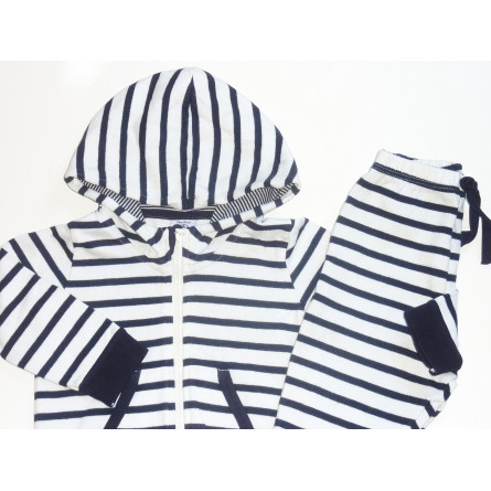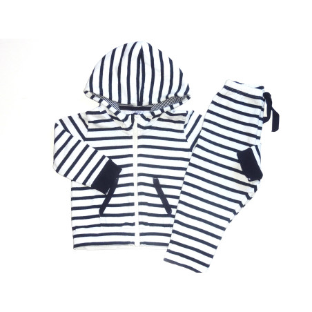 Ensemble de marque PETIT BATEAU en excellent état, en coton, composé d'un pantalon à taille élastique et du sweat à capuche à fermeture zippée.
