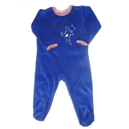 Classique de la marque iconique PETIT BATEAU, ce pyjama en éponge est en excellent état. Couleur bleue nuit orné d'un petit motif et d'un liseré rouge. Fermeture par pressions dans le dos.