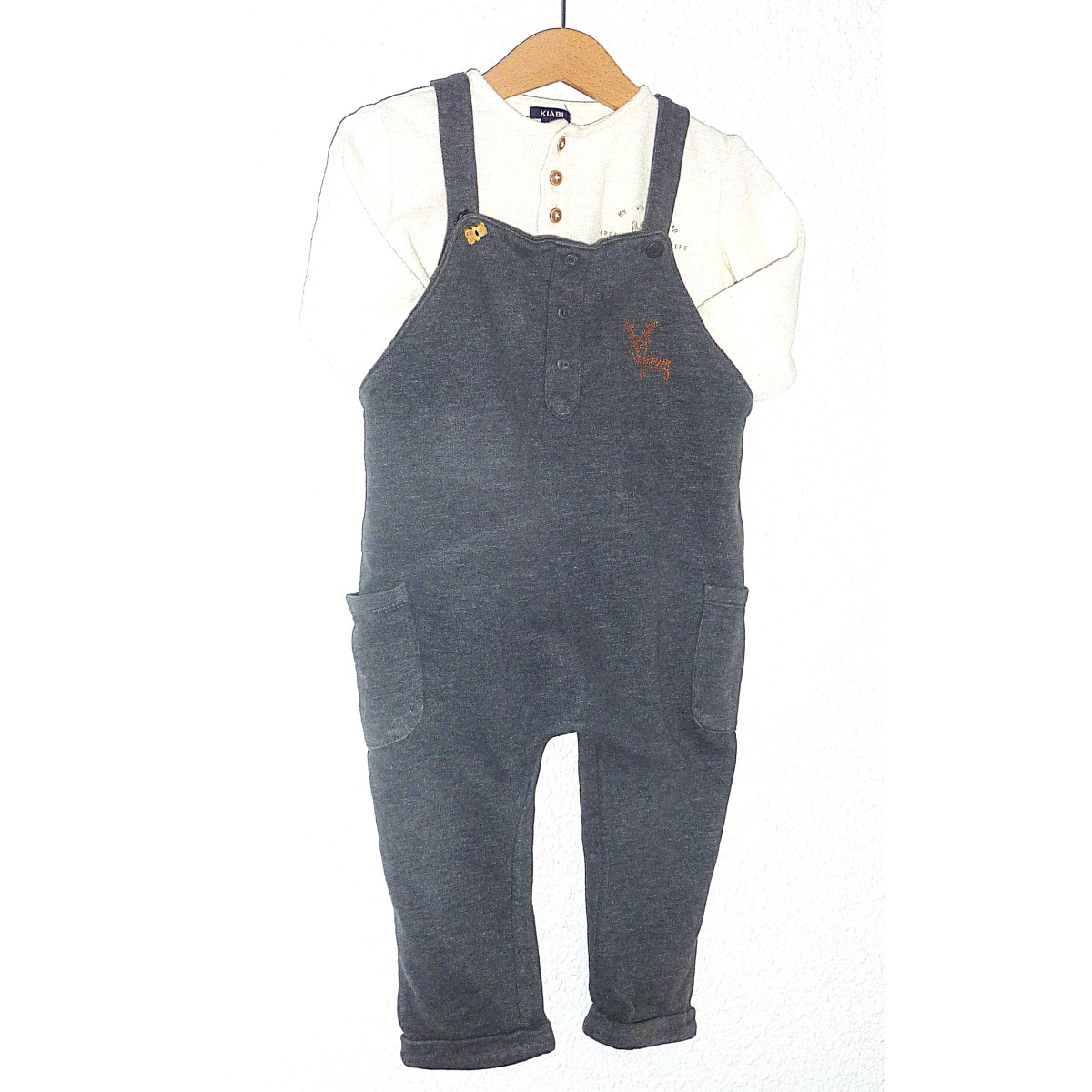 Salopette doublée de marque VERT BAUDET en excellent état, couleur gris fumé, associée au haut KIABI en excellent état, couleur crème.