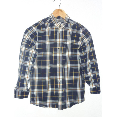 Chemise, en parfait état, de la grande marque CYRILLUS, à carreaux marine, moutarde et crème.