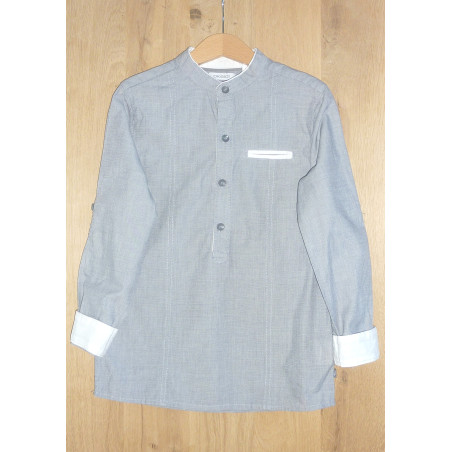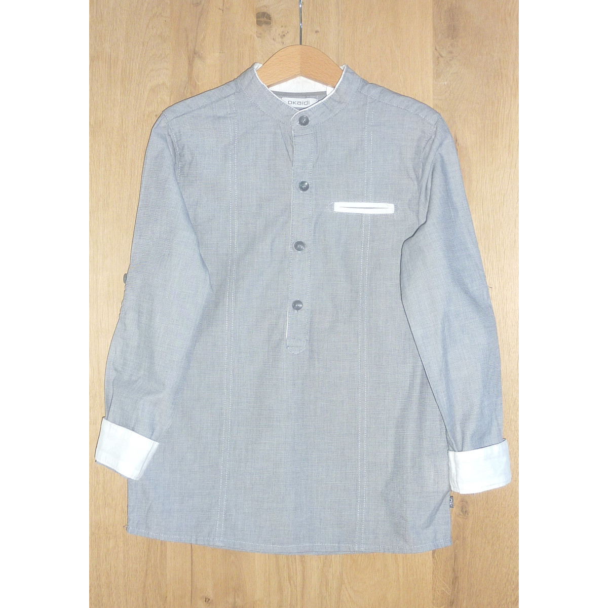 Chemise en parfait état de marque OKAIDI, grise, col mao boutonné, on craque pour son petit style chic.