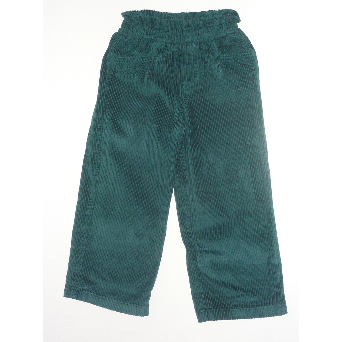 Pantalon en excellent état de marque KIABI, couleur vert bouteille, en velours côtelé, coupe large et ceinture élastque. Modèle mixte.