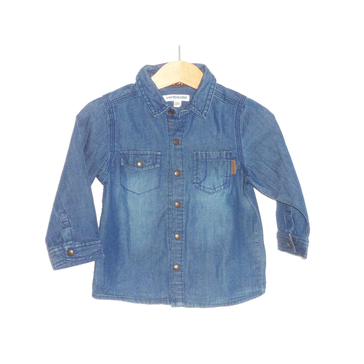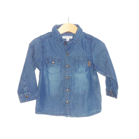 Chemise en denim léger de marque VERT BAUDET en excellent état, couleur bleue.