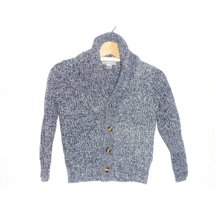Gilet en excellent état de marque VERT BAUDET, en coton tricoté, couleur bleue chinée, Fermeture à boutons.