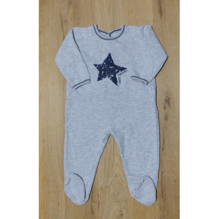 Pyjama en coton doublé et épais de marque PETIT BATEAU en excellent état, gris, orné d'un motif marine.