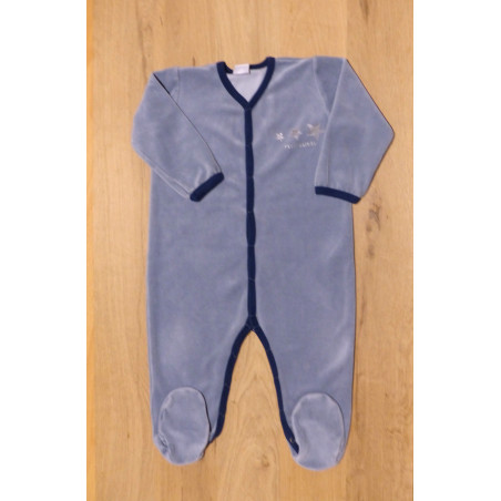 Pyjama en velours tout doux de marque PETIT BATEAU en excellent état, bleu grisé orné d'un liseré bleu.