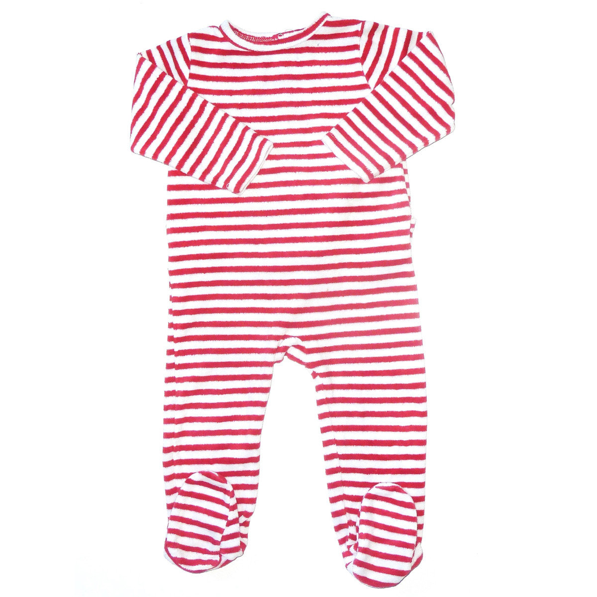 Pyjama en velours bio de marque BOUTCHOU en très bon état, rouge et blanc rayé.