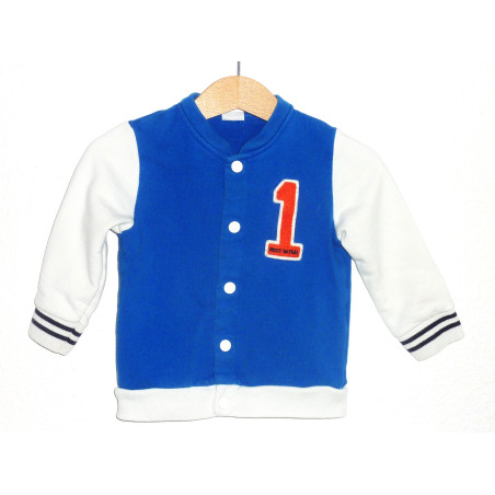 Sweat en coton de marque PETIT BATEAU en excellent état, bleu et crème, fermeture par pressions.
