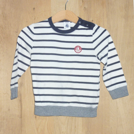 Haut, de marque PETIT BATEAU en excellent état, imprimé rayé marine sur fond blanc.