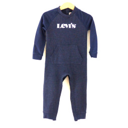 Combinaison en coton de marque LEVIS, en excellent état. Inscription de la marque couleur crème sur fond bleu encre. Ouverture par pressions à l'entrejambe.